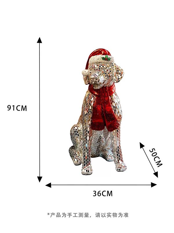 Handmade Glass Mirror Mosaic Dog Sculpture for Christmas Decoration, Hotel Display and Commercial Space